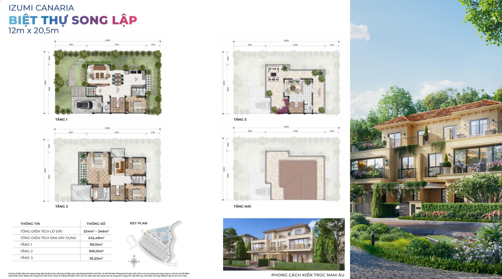 Kiến trúc: Phong cách Địa Trung Hải tinh tế, Nam Âu phóng khoáng, sang trọng