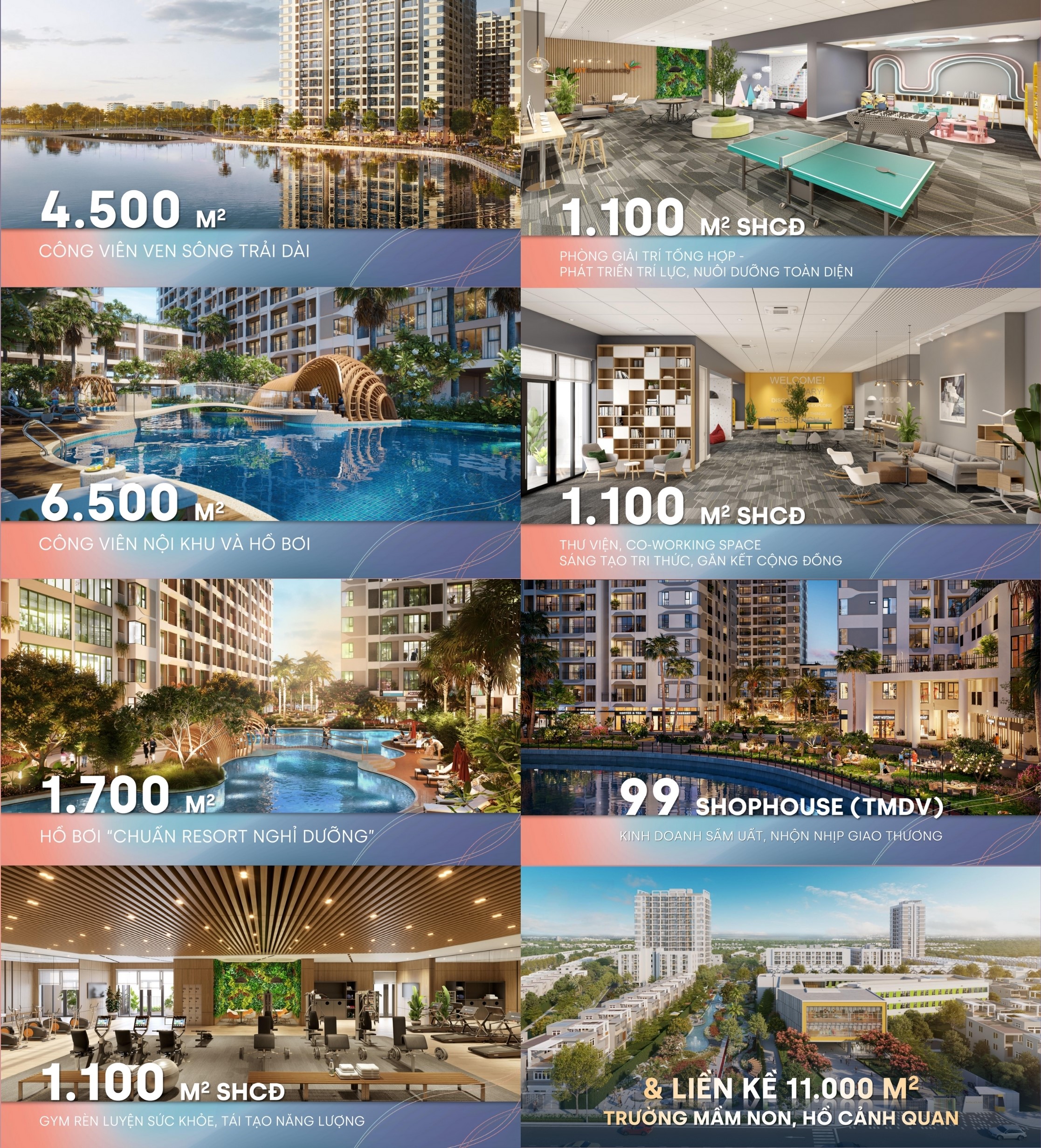Tiện ích: Hồ bơi, công viên, nhà hàng, trung tâm thương mại, trung tâm thể thao, khu vui chơi trẻ em…