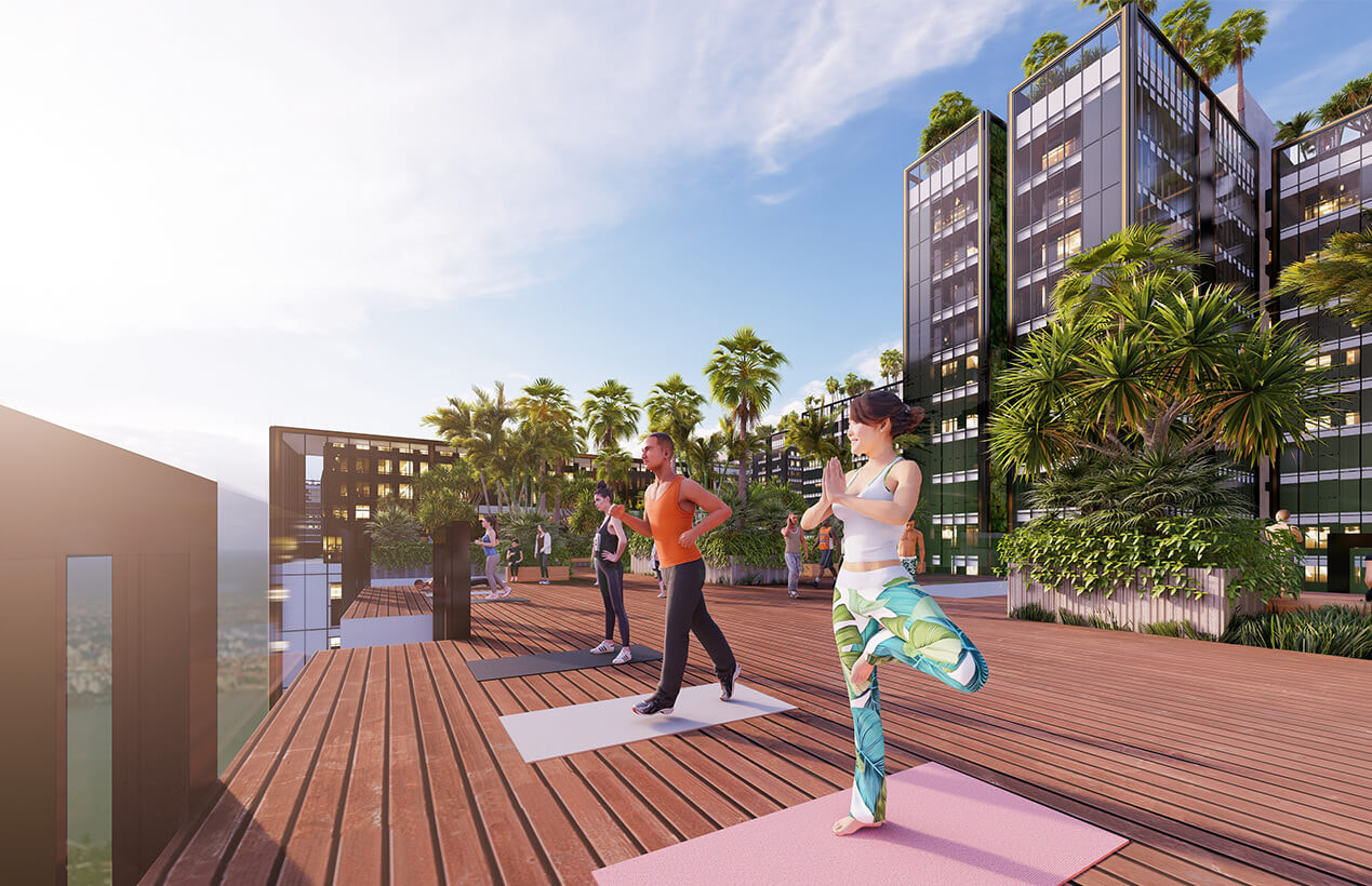 Tầng mái – Ốc đảo giữa tầng không: Tại tầng mái mỗi tòa, Sunshine Sky City phát triển không gian “sky retreat” – nơi giao thoa giữa thiên nhiên và sự riêng tư. Cư dân có thể tận hưởng làn gió cao tầng, thưởng thức cocktail giữa khung cảnh thành phố về đêm.