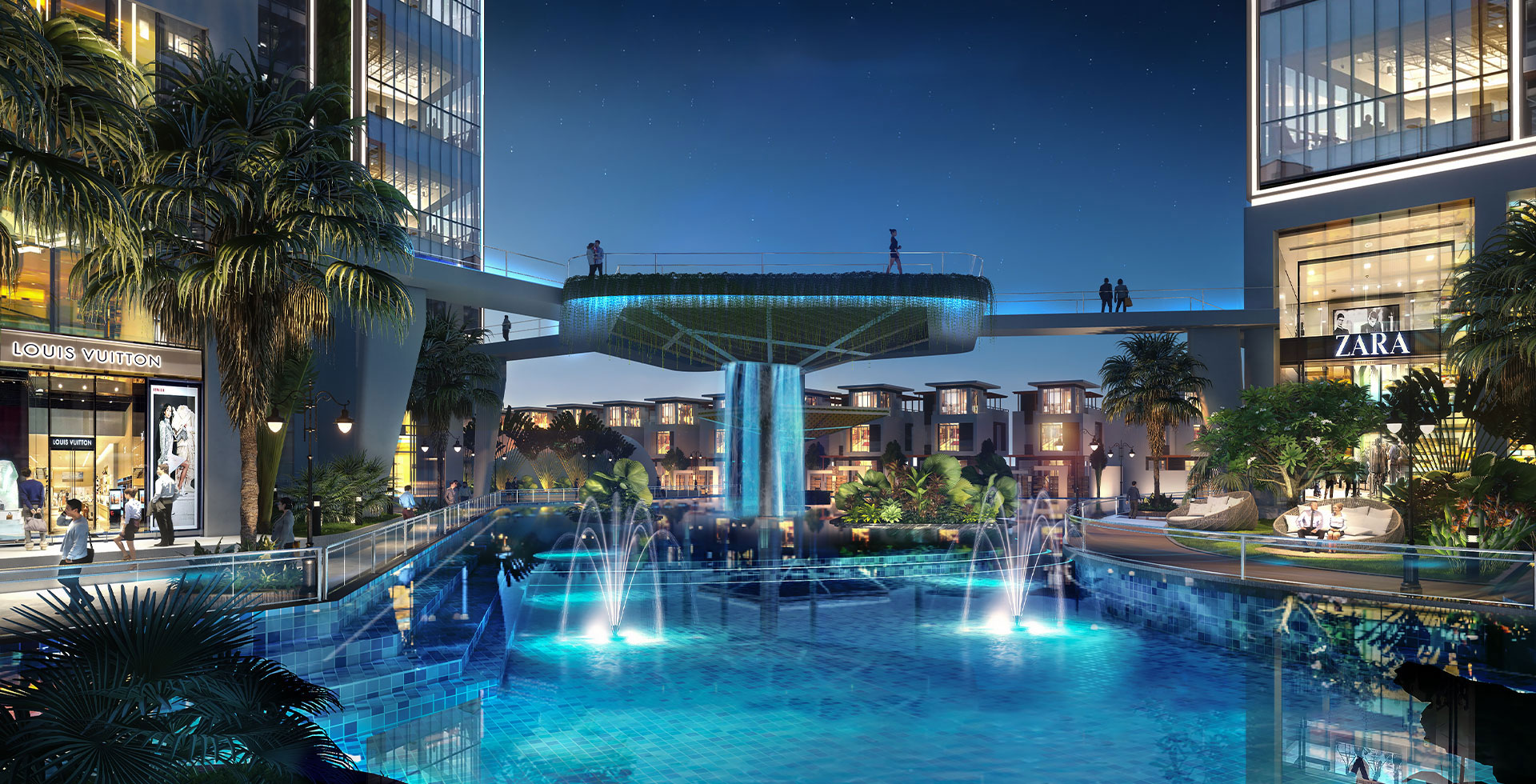 Kiến trúc xanh giữa đô thị: Sở hữu hệ thống các hồ điều hòa đan xen cùng cây xanh bố trí khắp lõi cảnh quan và trên tầng cao, tạo nên không gian sống trong lành, gần gũi thiên nhiên.