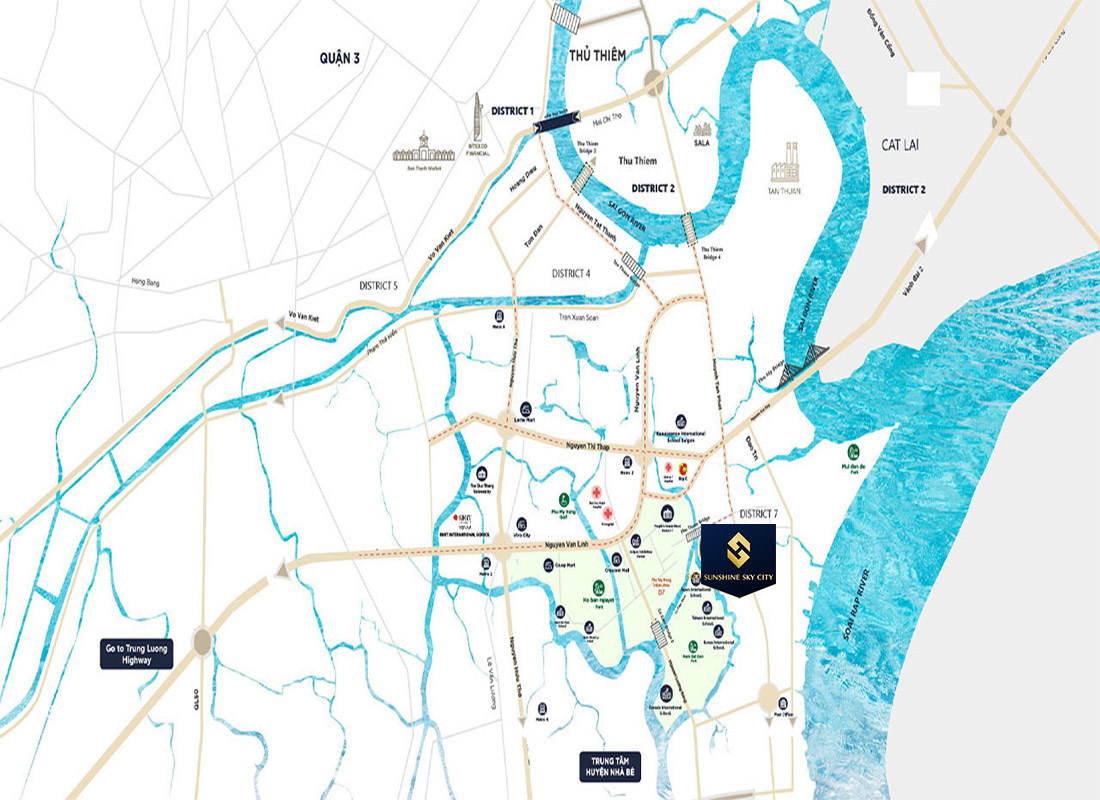 Nằm ngay trên tuyến đường có hạ tầng giao thông hoàn thiện, liền kề trung tâm Phú Mỹ Hưng, nằm trục đường chính là nơi giao nhau giữa đường Huỳnh Tấn Phát và Phú Thuận giúp kết nối giao thông thuận tiện về Trung tâm TP (quận 1), quận 2, Nhà Bè. Đồng thời thừa hưởng toàn bộ tiện ích đa dạng và sẵn có như: Bệnh viện, trường học quốc tế hàng đầu, các khu vực vui chơi, giải trí đẳng cấp phục vụ cuộc sống thượng lưu.