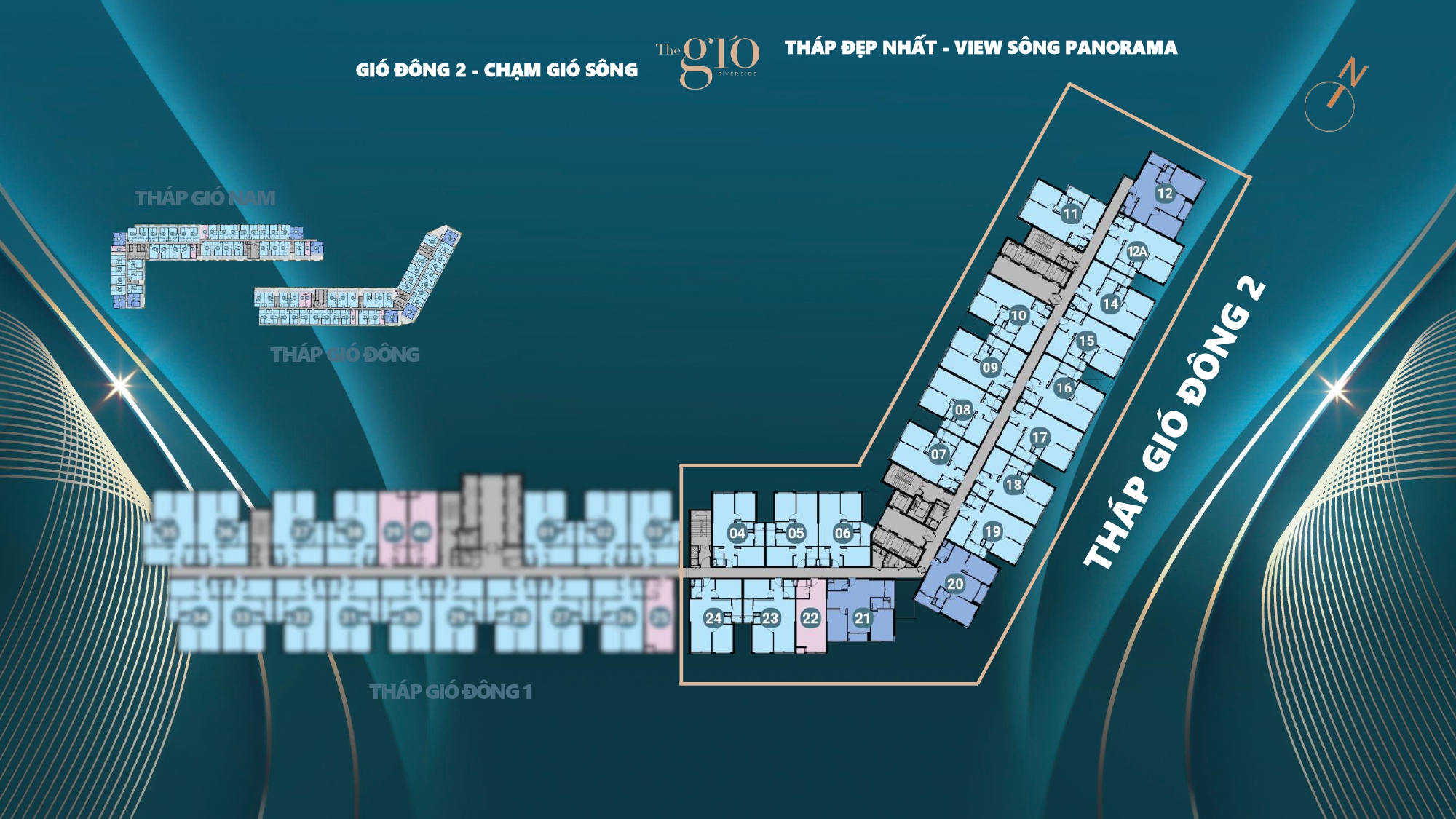 Quy mô | 2 Block chữ L (Block A – Gió Đông Tower & Block B – Gió Nam Tower) |